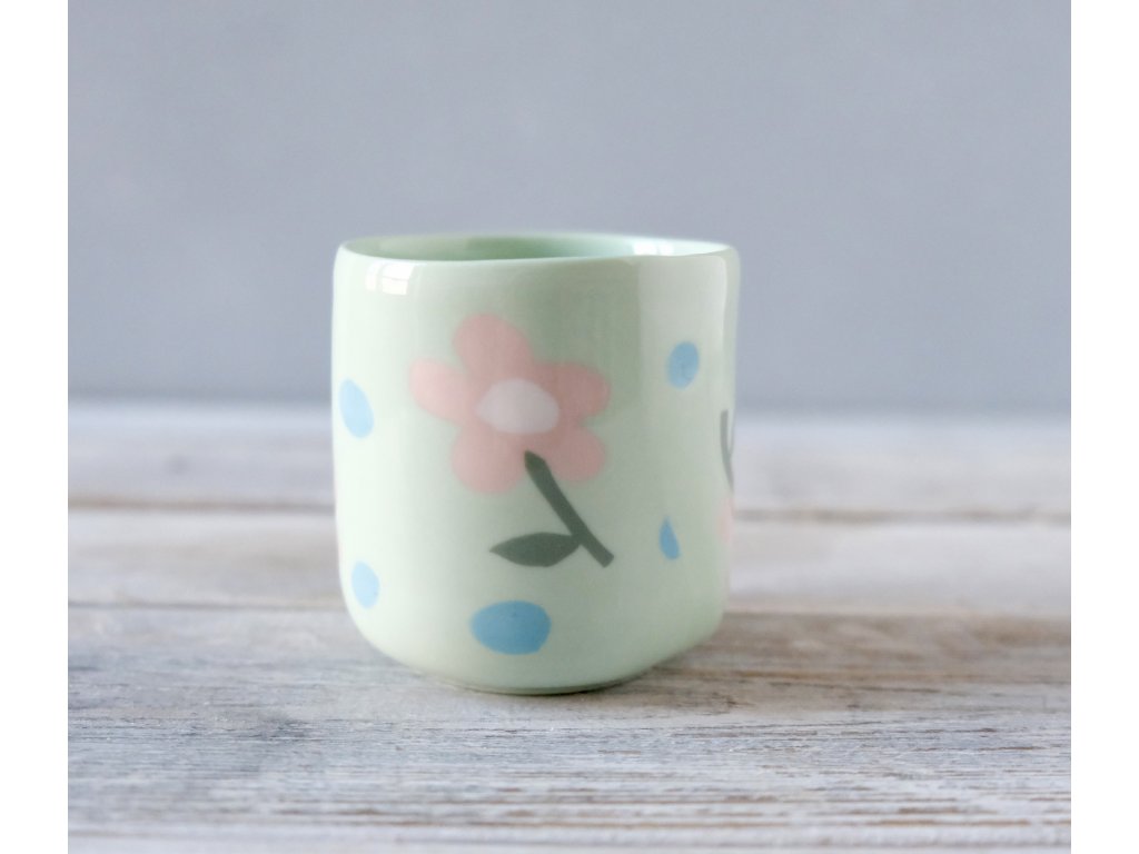 Porcelánový pohárek 150 ml - Kvítka v zelené
