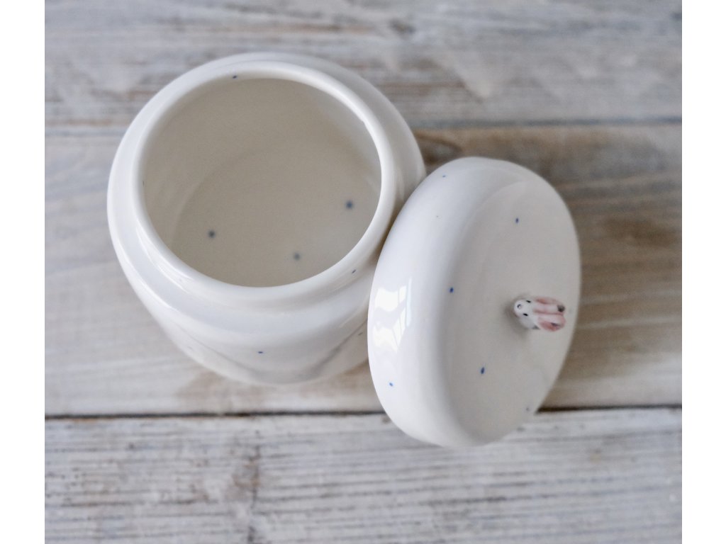 Jedinečná dóza, která vznikla ve spolupráci s Terezou Šrámkovou aka Tabatěrkou. V Emě dózy vytočíme, Tereza pak vymodeluje zvířátka a ozdobí svými charakteristickými jemnými dekory. Vše je unikátní ruční práce.