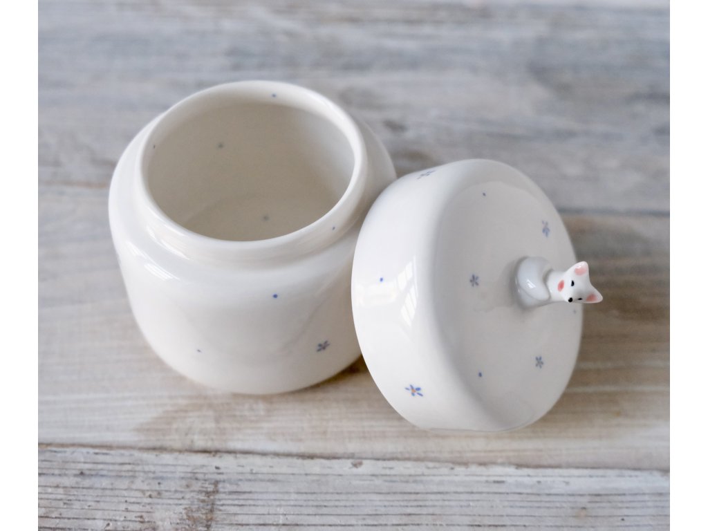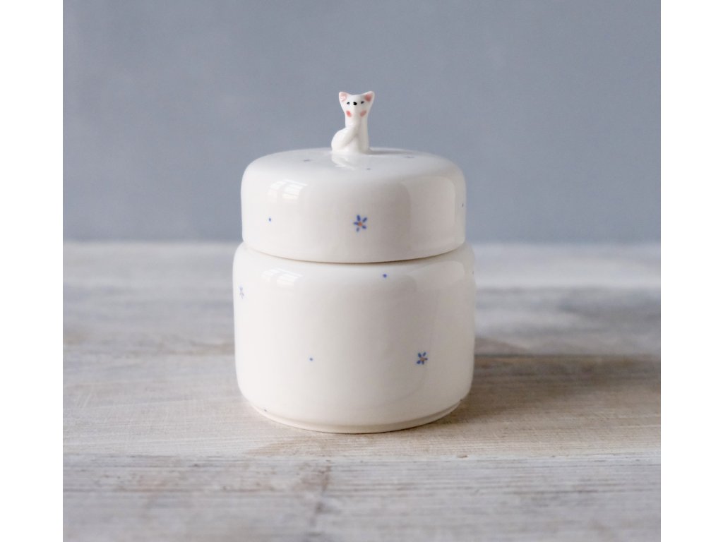 Jedinečná dóza, která vznikla ve spolupráci s Terezou Šrámkovou aka Tabatěrkou. V Emě dózy vytočíme, Tereza pak vymodeluje zvířátka a ozdobí svými charakteristickými jemnými dekory. Vše je unikátní ruční práce.