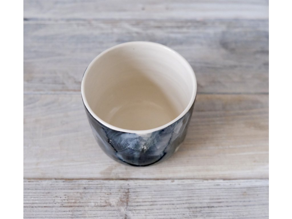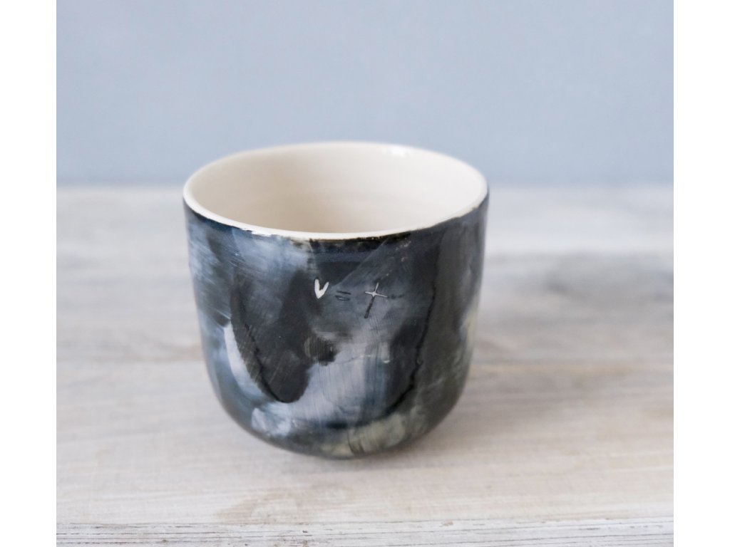 Na hrnčířském kruhu točený, poté ručně dekorovaný pohárek. Ideální na kávičku.
