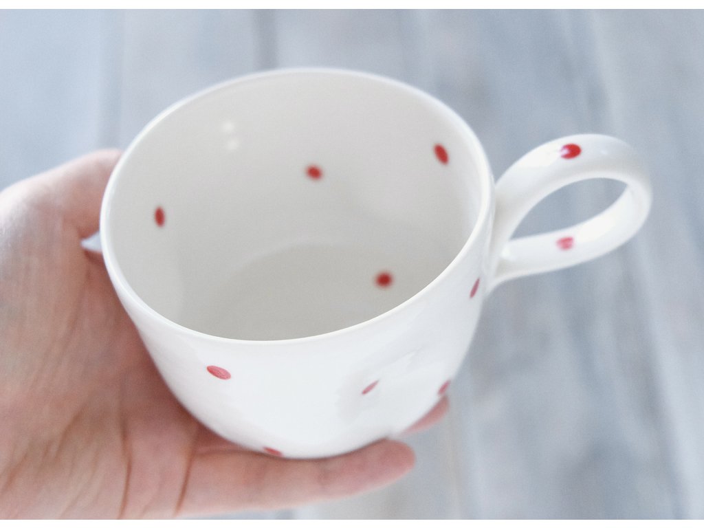 Porcelánový hrnek 250 ml- Muchlánek s červenými puntíky