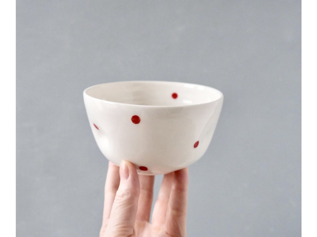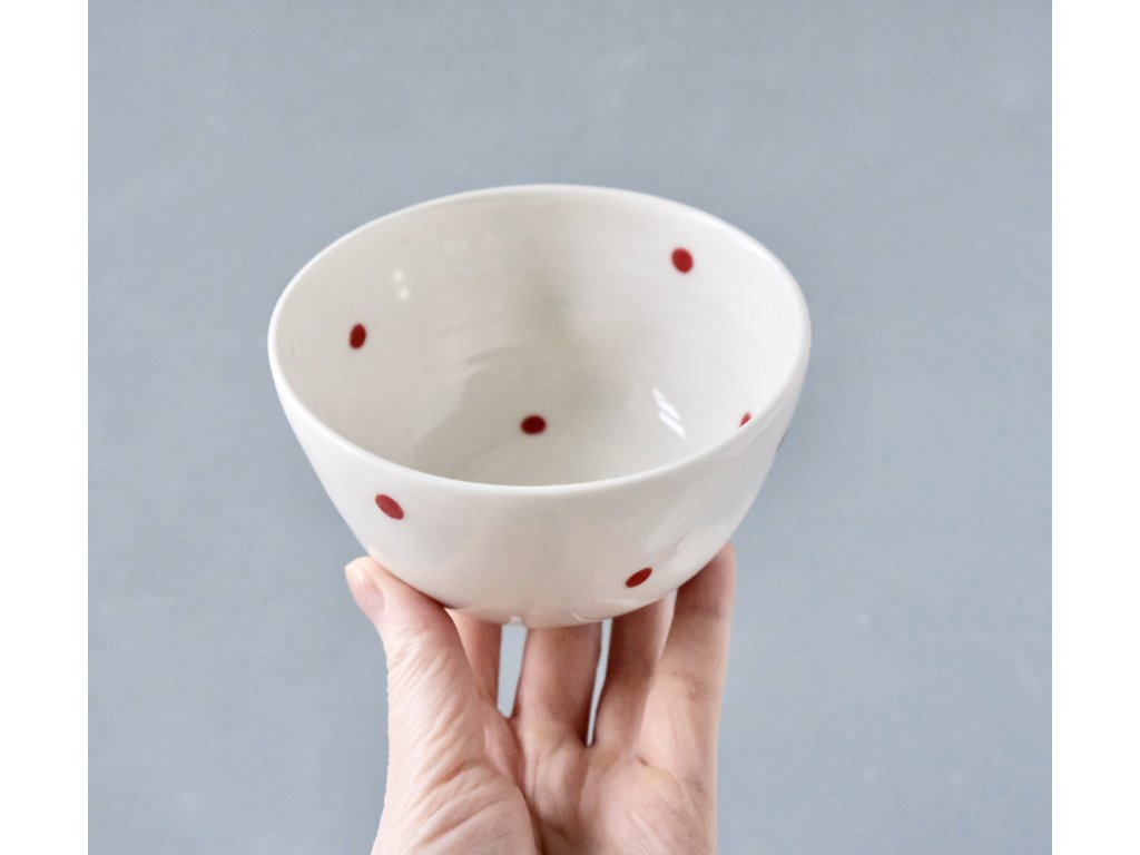 Miska porcelánová 400 ml - muchlánková s červenými puntíky