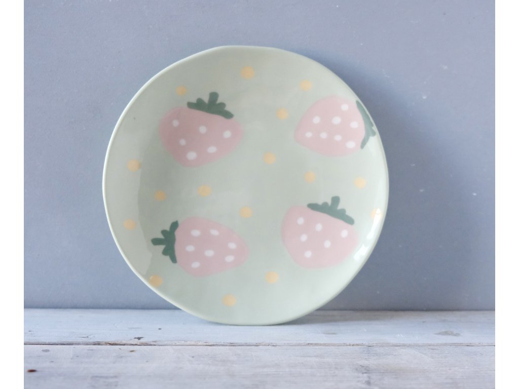 Dezertní porcelánový talíř 17 cm - Jahůdky v zelené