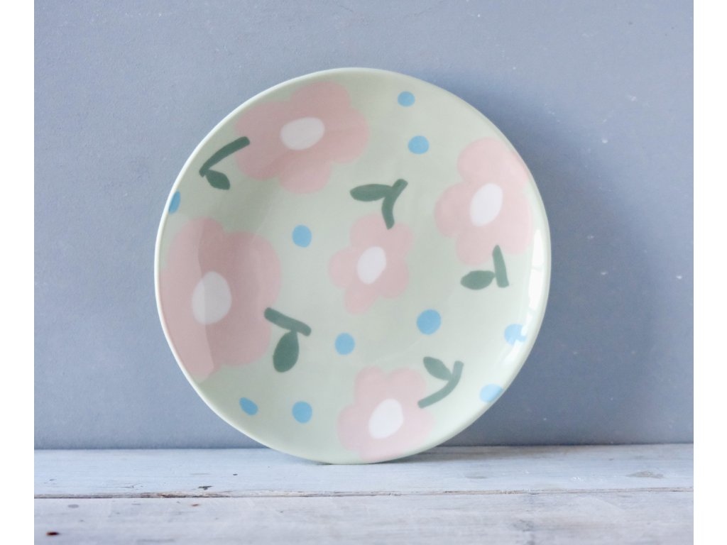 Dezertní porcelánový talíř 18 cm - Kvítka v zelené