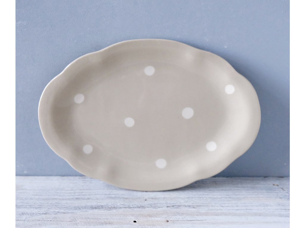 Dortíčkový talíř - Šedozelený s puntíky