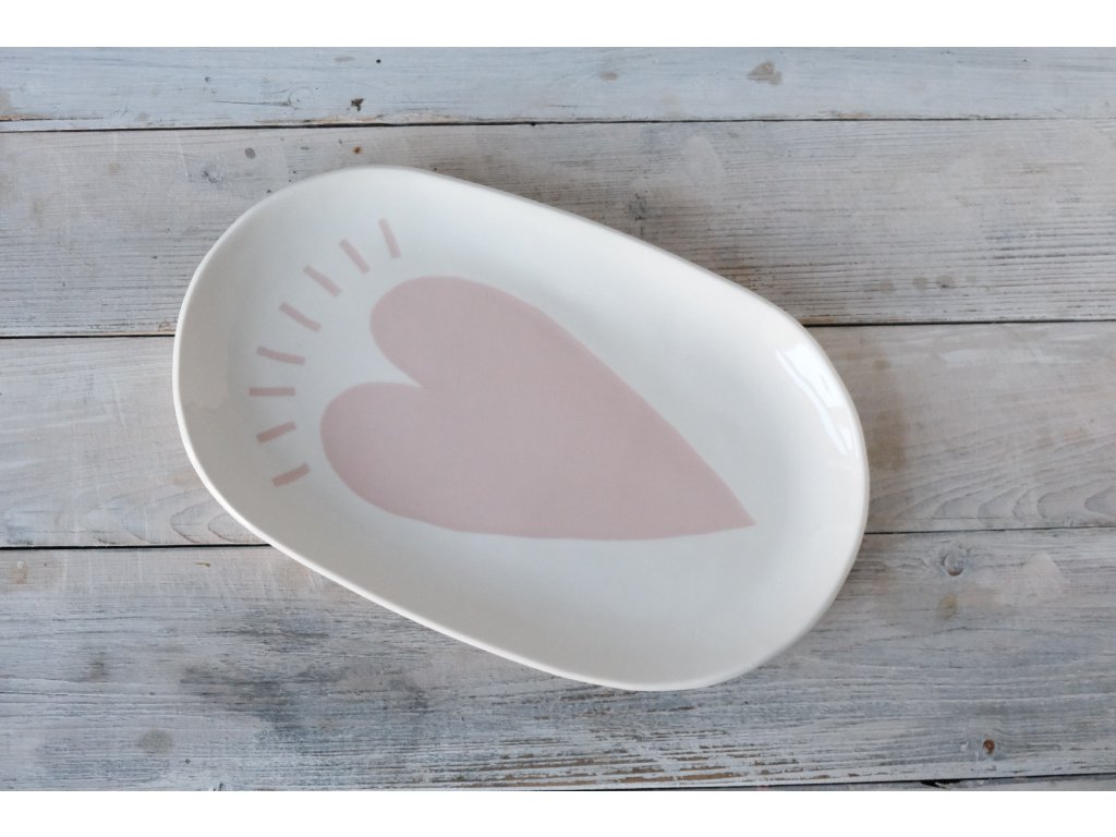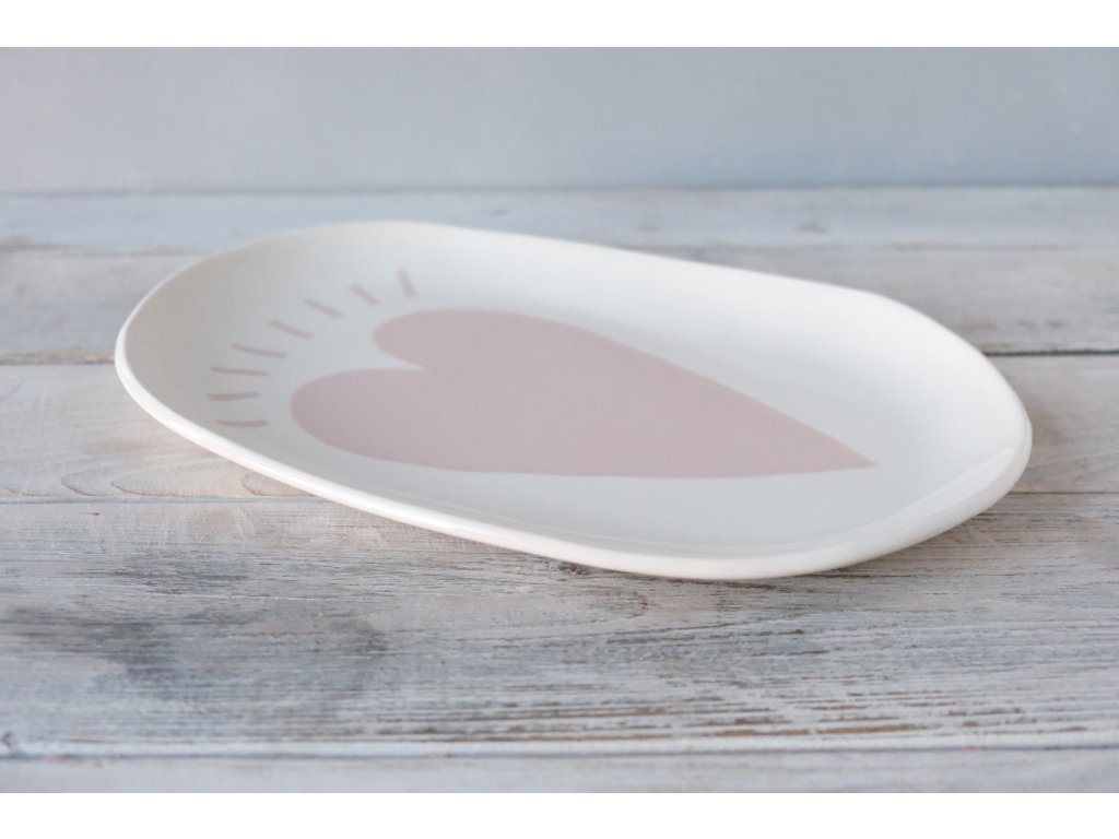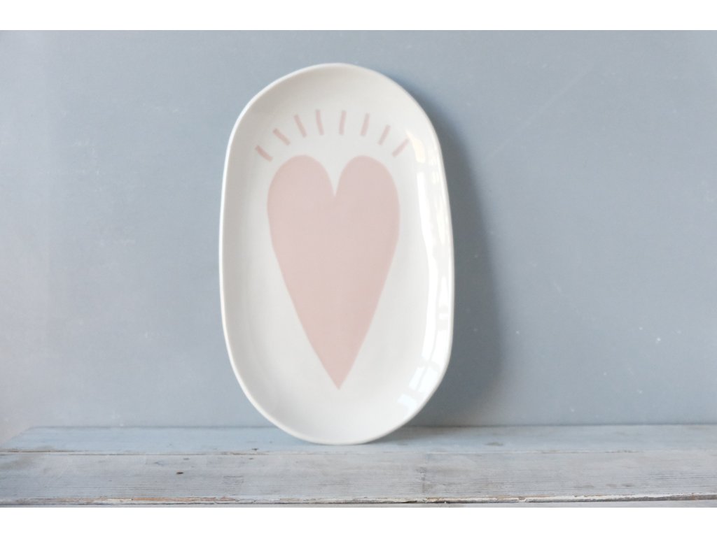 Oválný servírovací tácek porcelánový L 31x18 cm - Srdce do nebe zářící