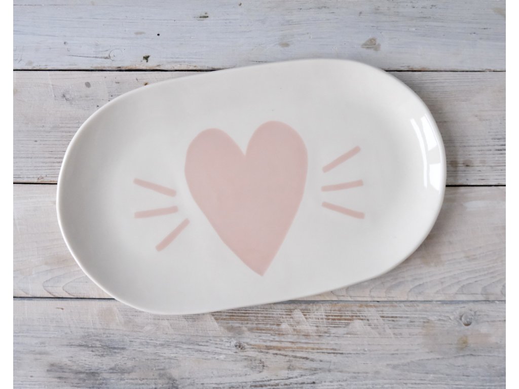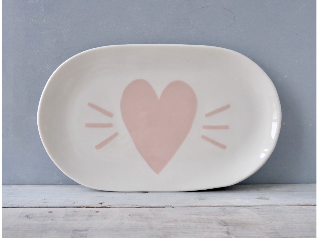 Oválný servírovací tácek porcelánový L 31x18 cm - Zářící srdce