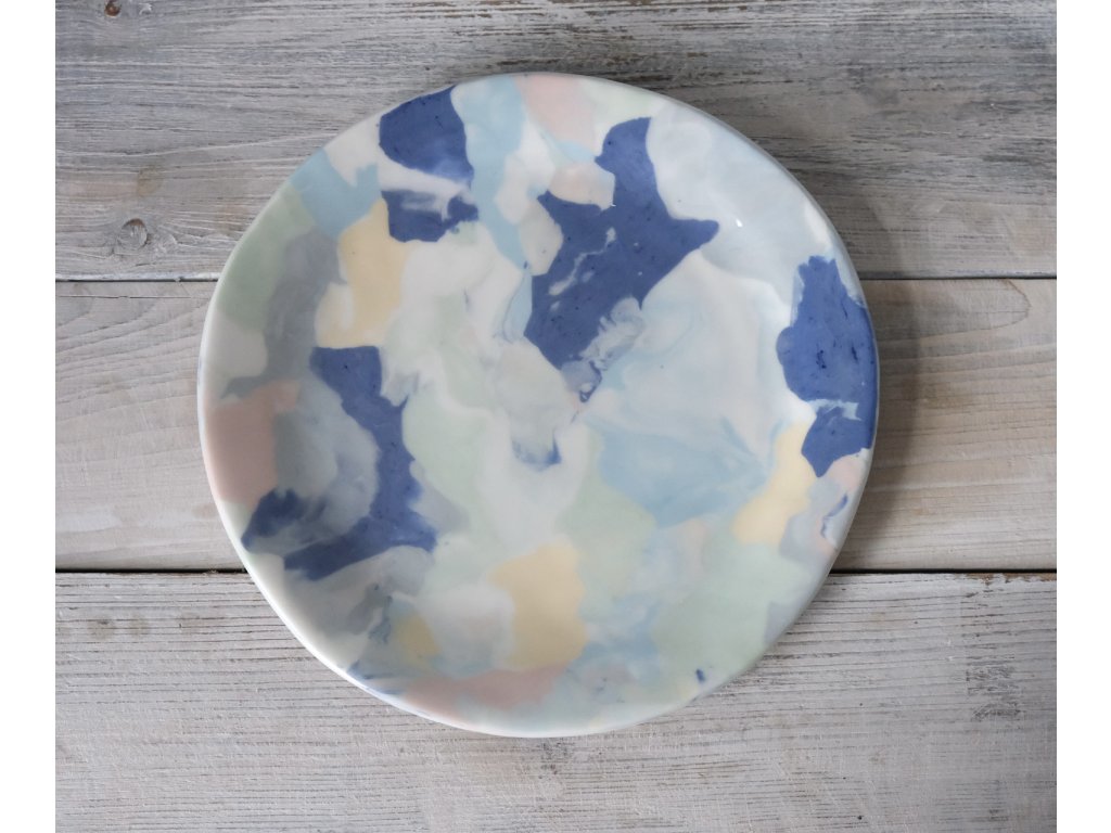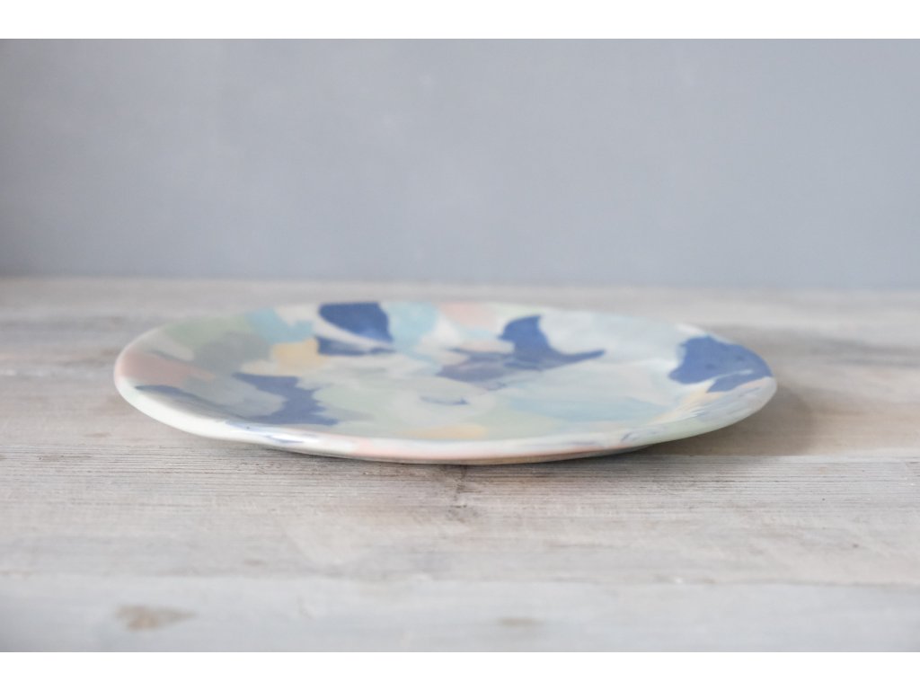 Tento ručně modelovaný a dekorovaný talíř je svou velikostí vhodný jako větší dezertní nebo snídaňový, případně jako menší servírovací. Vzhledem k vysoké teplotě výpalu a hutnému kameninovému střepu jsou odolné vůči oťukávání.