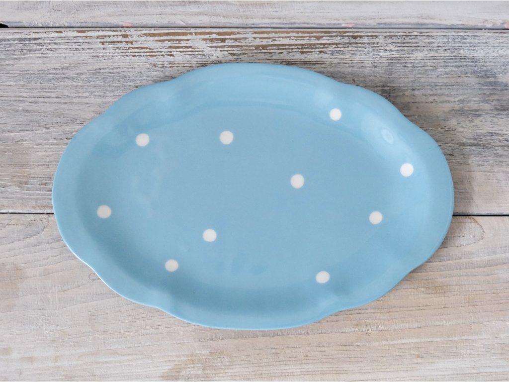 Výprodej Dortíčkový talíř - Modrý s puntíky
